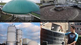In a farm or ranch set-up, crop residues and manure, and sometimes waste from neighboring communities, are placed in a half-buried concrete pit with an impermeable cover. The biogas is temporarily collected under the cover before being transported to a storage tank, where it can later be retrieved. The digestate may be returned to the tank where it can continue to be used or applied as a soil conditioner. The operations need to be monitored daily to ensure the process is under control and the gas pipes are working safely. Power capacity varies widely from one unit to another. In France, the average capacity of a farm digester is 200 kilowatts (see box).