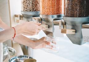 Constitués à partir du carbone, les plastiques sont produits essentiellement à partir du du , via les molécules de , plus légères que l’essence. Ils peuvent aussi être dérivés de la , via l’amidon ou la cellulose de céréales, comme le maïs. Des recherches sont même conduites pour les obtenir à partir du gaz CO2, combiné à l’ . La et la chimie « verte » fabriquent des polymères qui sont assemblés de multiples façons sous forme de granulés, de poudres ou de liquides. Sur la photo, ce sont des grains issus de la pomme de terre pour la fabrication de sacs biodégradables.
